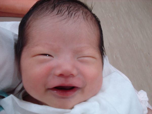 * 這張照片很好玩唷!今天老婆餵母乳時,跟寶寶說:對媽媽笑一個嘛!她真的笑了~~好神奇喔!